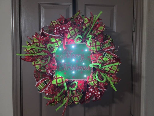 Christmas wreath, Door wreath, holiday wreath, winter wreath, red and lime green, front door wreath