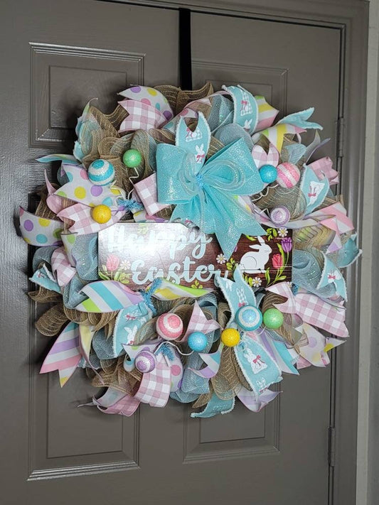 Easter wreath, Spring wreath, Easter door hanger, bunny wreath, turquoise wreath, Everyday wreath