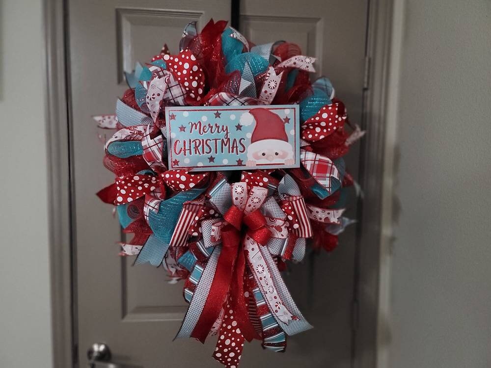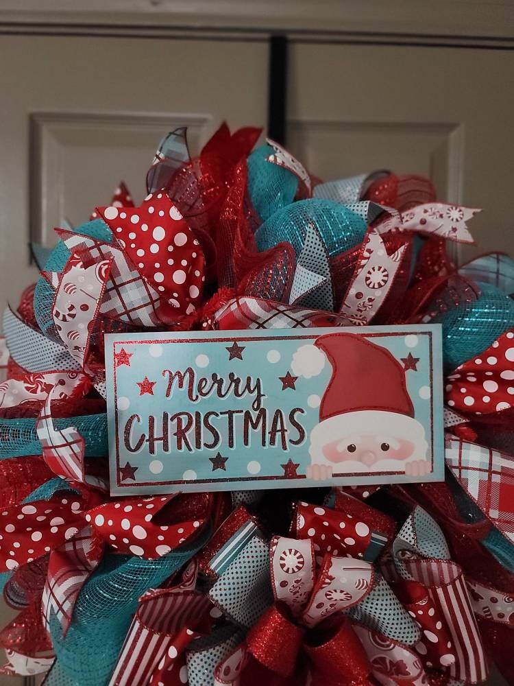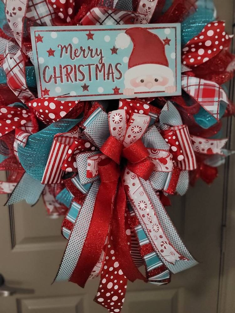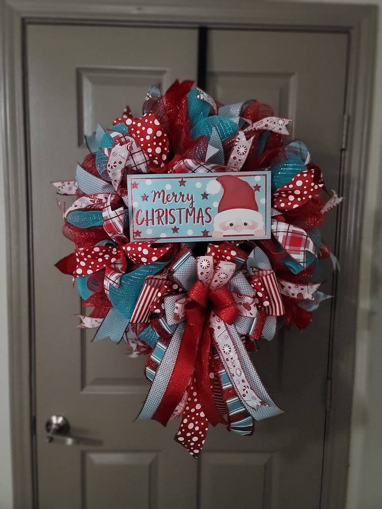 Christmas wreath, Red and Turquoise Christmas wreath, Santa Wreath, Door decor, Front door wreath