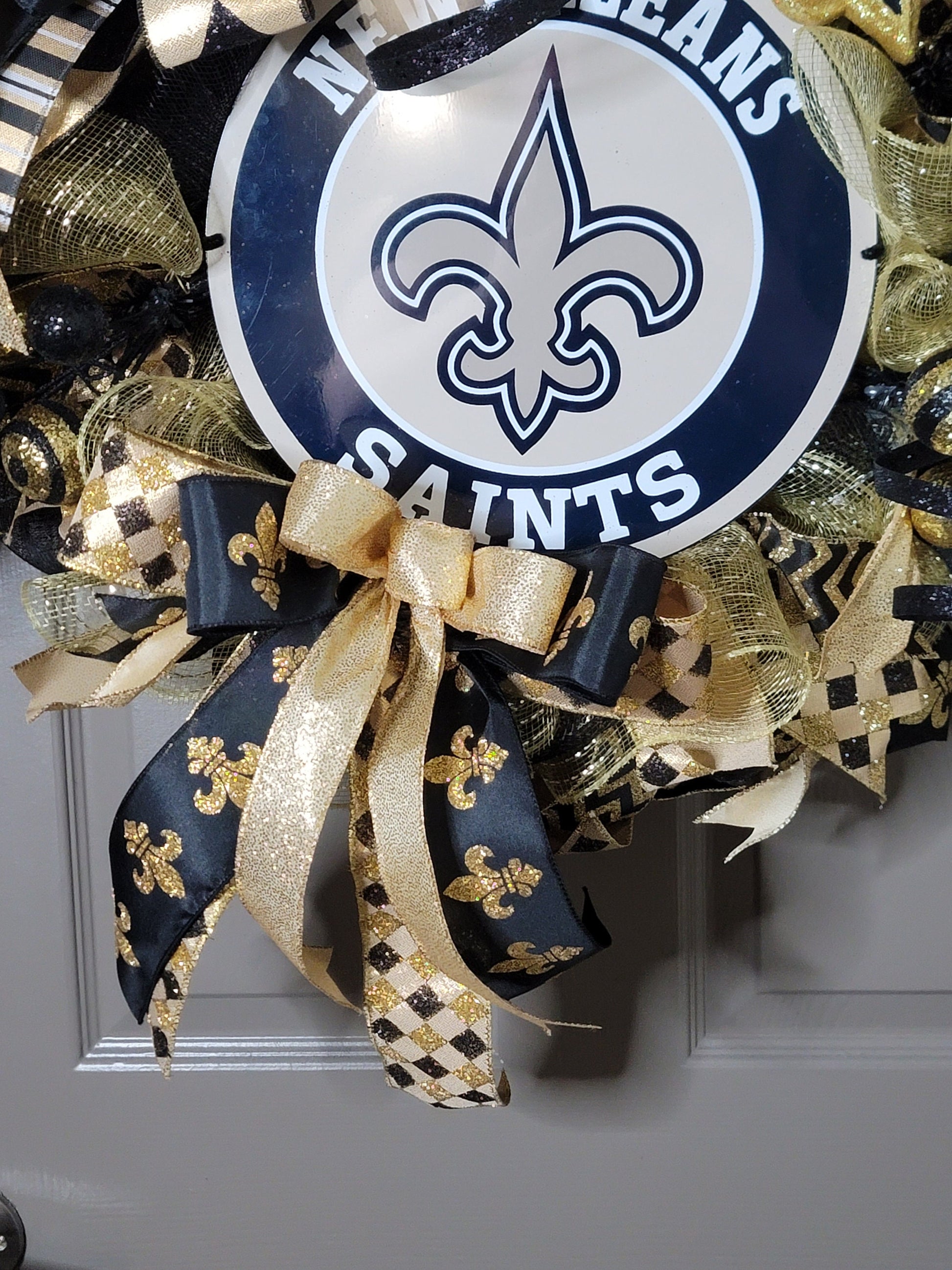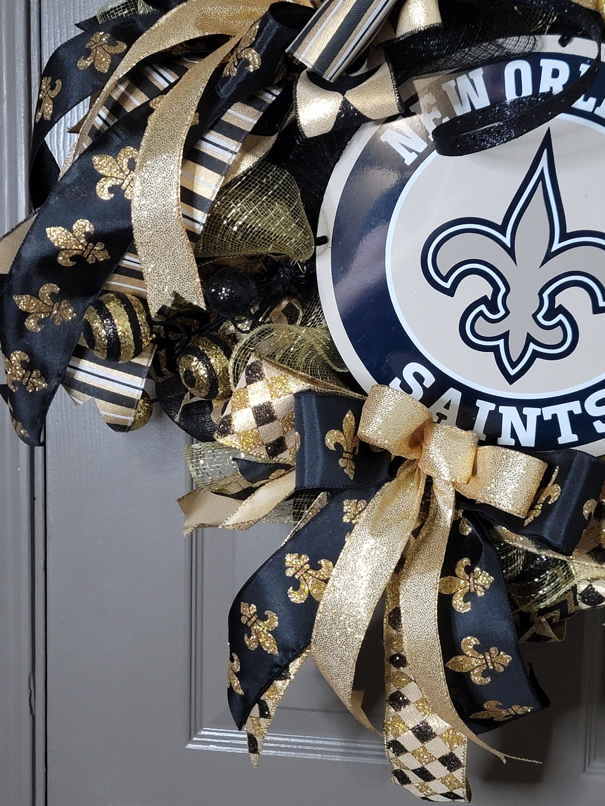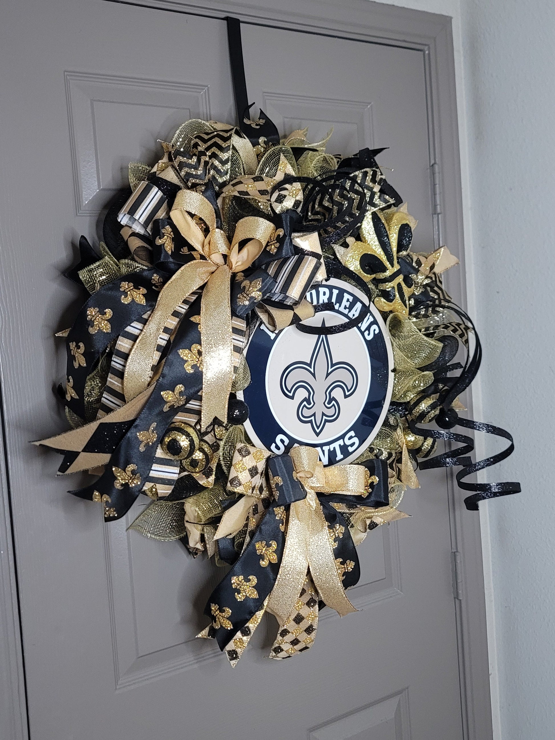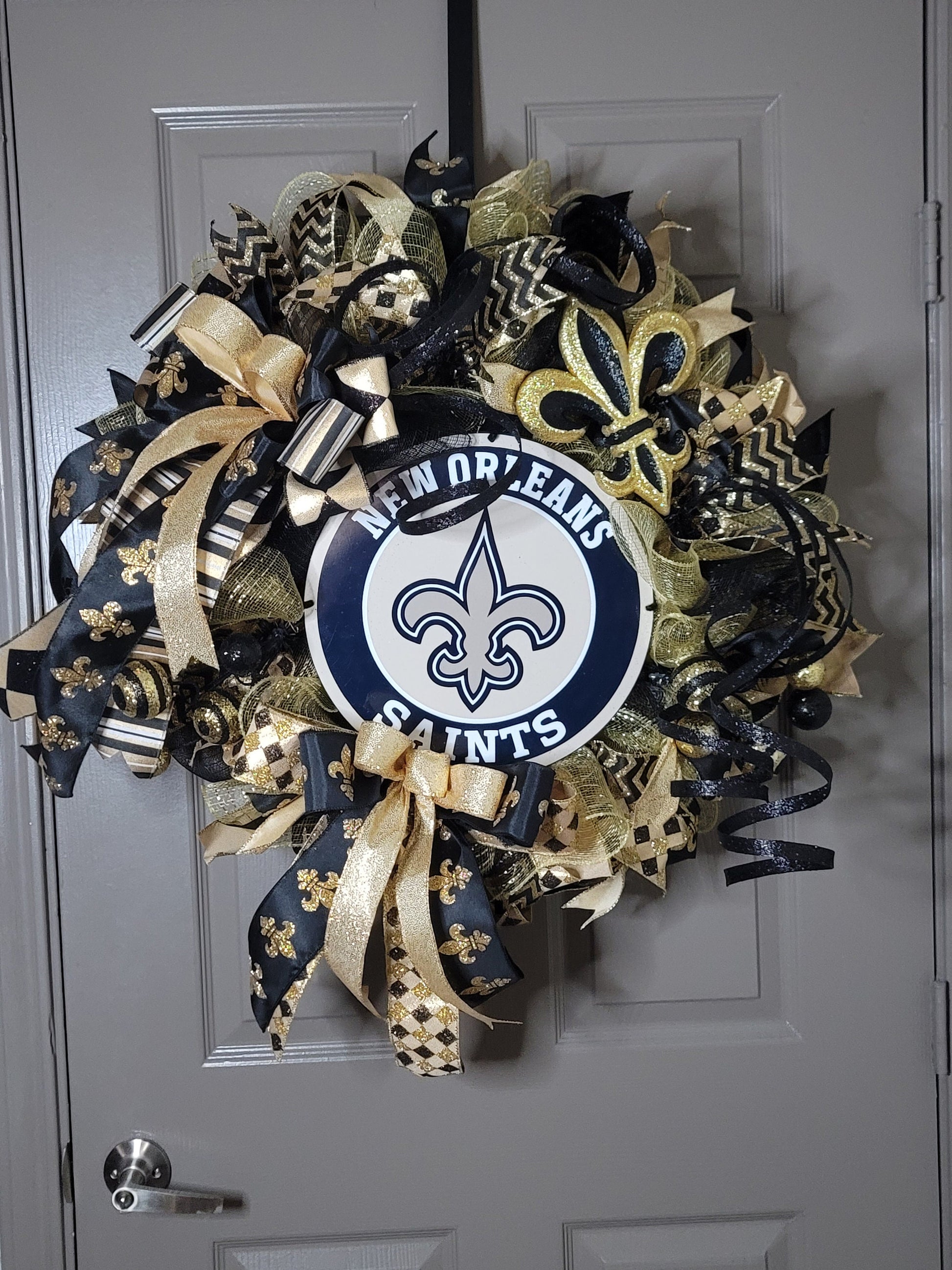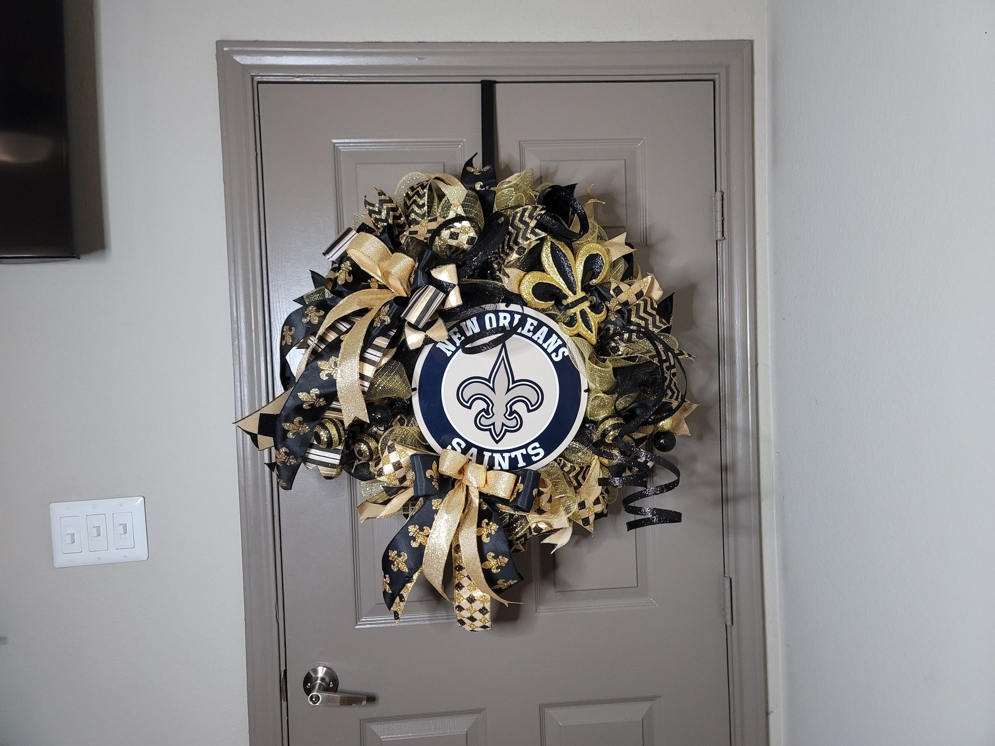 New Orleans Saints football wreath, black and gold wreath, football wreath, NFL wreath